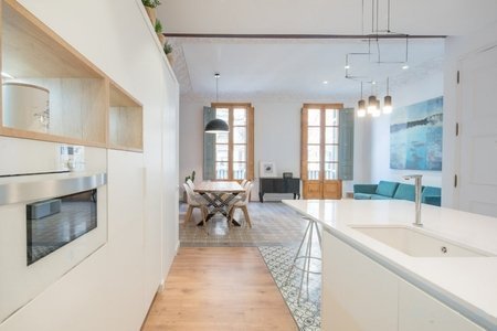 Este proyecto se ha realizado a partir de un proyecto de interiorismo, se ha conseguido destacar el espacio y la luz. Se ha hecho de el salón el área principal de la dúplex.